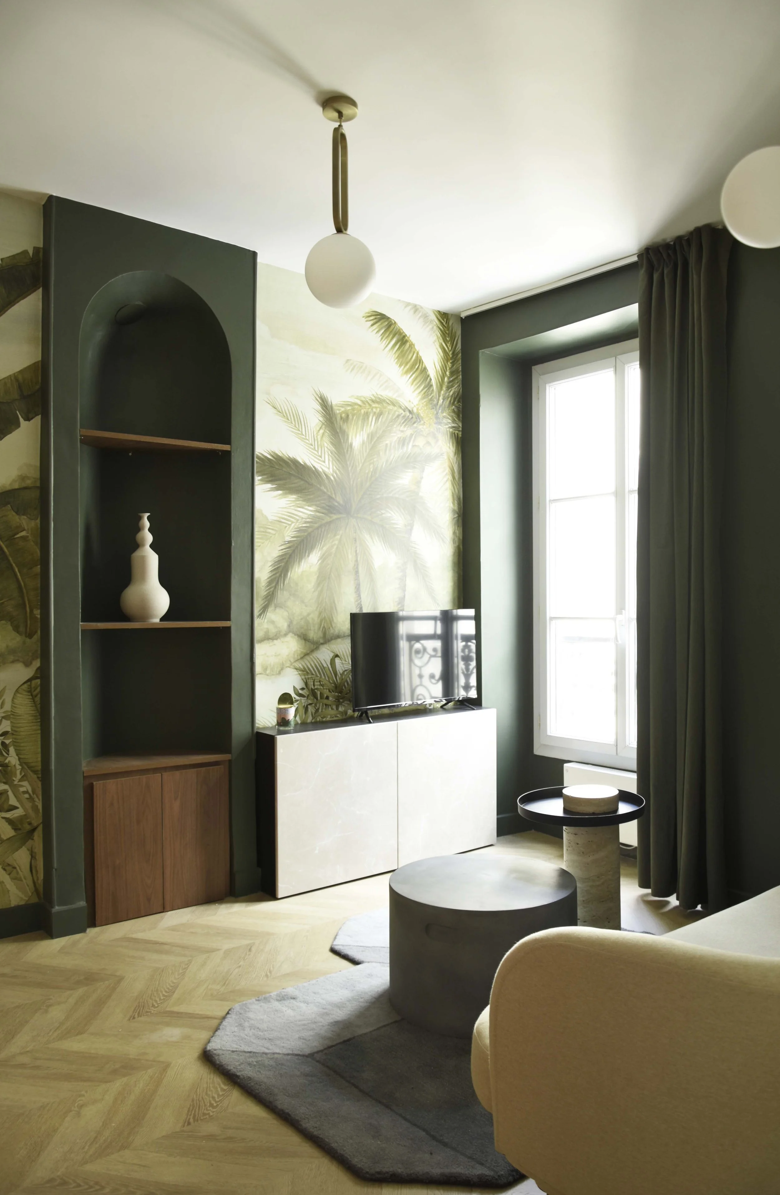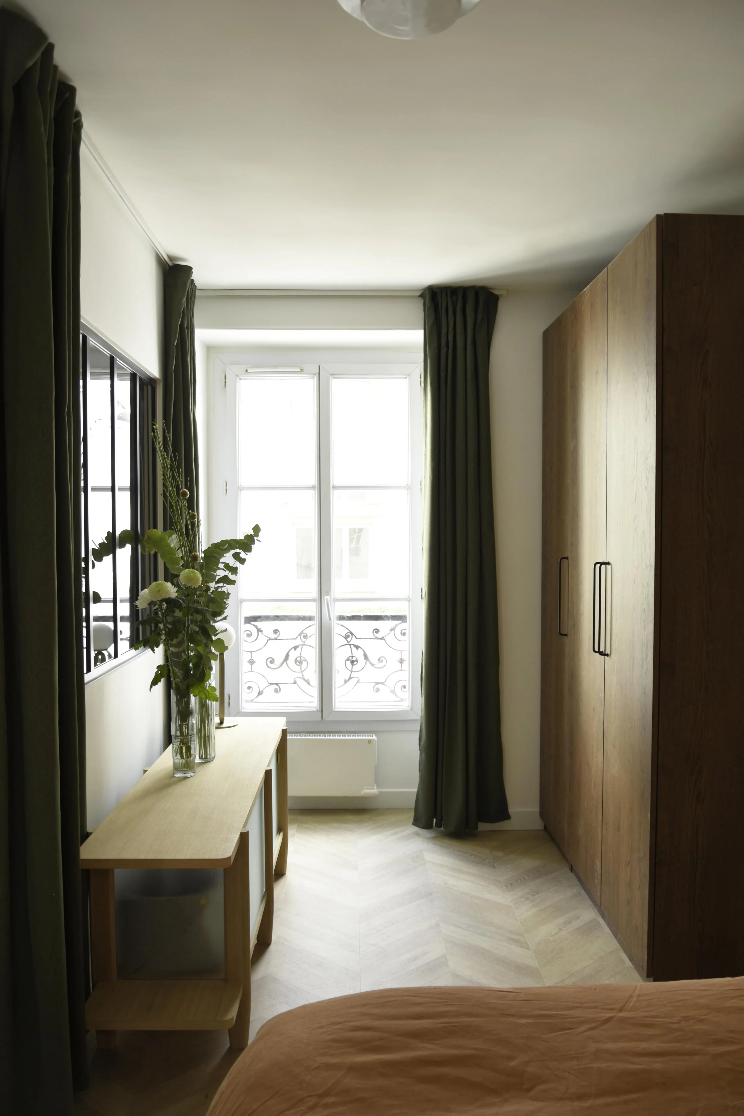 Dans l'effervescence de Marx Dormoy, nous avons imaginé un refuge où le voyage commence dès le seuil franchi. Ici, le défi était de transformer l'exiguïté d'un studio en une suite de perspectives, un 2-pièces où l'espace ne se subit plus, mais se respire.